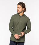 60% TENCEL™ lyocell/40% organic cotton. Special order items are strictly non-returnable. Lead times vary. Enzyme washed. Button down collar. Recycled plastic buttons. Left chest pocket. Back yoke with two pleats. Two button adjustable cuffs with button on cuff gauntlet. Straight hem. Tag free. Garment washed after assembly, colours may vary slightly.