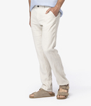 100% linen. Special order items are strictly non-returnable. Lead times vary. Belt loops. Inner waistband with navy french seam. Recycled metal zip fly with recycled plastic button over. Two side pockets. Rear piped pockets with recycled plastic button closure. Reinforced stitching. Tag free. Due to the washing process each garment is unique.