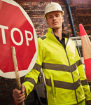 Two layer soft shell. Warm backed polyester soft shell outer layer, made from at least 50% recycled polyester. Conforms to EN ISO 20471: 2013 + A1: 2016 class 3. RIS-3279-TOM (orange only). Showerproof. Full length contrast zip. Two angled ID reflective tape bands around the body, sleeves and one on each shoulder. Two front zip pockets. Open cuffs and hem. Branded tab on lower left side seam.