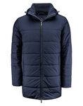 - Longer padded jacket with two-way zipper